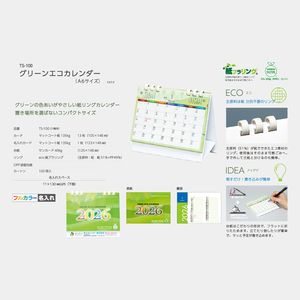 TS-100 グリーンエコカレンダー 白台紙(フルカラー) 名入れカレンダー